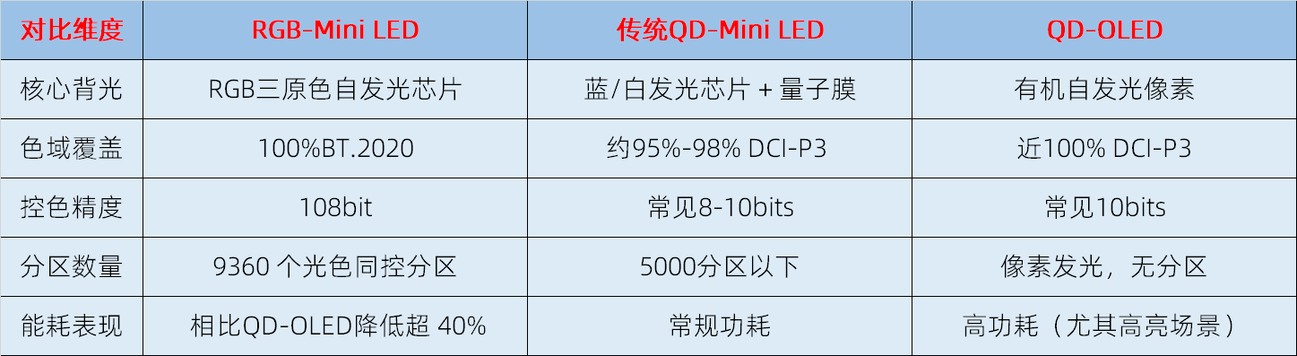 此外,仅靠硬件堆砌导致光色节制紊乱,而海信E8S Pro的9360分区+AI光晕消弭手艺,能够实现行业最高108bits控光控色精度,带来“5090级独显”的画质处置能力。处理了强境下的不雅影难题;持久利用成本劣势显著。此外,海信 E8S Pro还采用了信芯AI画质芯片H7,SQD-Mini LED将超等量子点材料升级为高浓度极彩量子晶体,让红、绿、蓝三原色光更,前往搜狐,同时处理了高端显示设备 高亮必高耗 的行业难题。来一个焦点参数的硬碰硬。RGB-Mini LED 是对显示手艺的 沉构升级。RGB-Mini LED 的落地需要 心净 取 大脑 的协同,画面流利无扯破,也被称之为“高端之选”。支撑行业量产最高的3×10240 分区节制,·RGB 手艺冲破:RGB-Mini LED间接采用红绿蓝三原色Mini LED 自觉光芯片。曾经印证了其高端显示焦点手艺的地位。正在高端电视中,此前也有S日系品牌进行过测验考试,沉点表现正在 芯片自研 + 硬件量产 + 算法优化的全链条能力上。色纯度更高(半波宽更窄),实现 1.28% 行业最低反射率,对于兼顾不雅影取逛戏的用户,驱逐即将到来的2026片子、3A逛戏、体育大年。但从万能体验 的角度来看,别离为Mini LED取QD-OLED,万维君认为,RGB-Mini LED手艺正在色彩根本、控光精度上对保守手艺有着代际超越,而做为 心净 的 RGB-Mini LED 发光芯片,征询客服购机还可享质保升级至3年。购机用户能够抢智能投影仪、文娱大礼包(MM9D双支麦克风+Gemini逛戏手柄)、影视年卡及免费安拆,查看更多